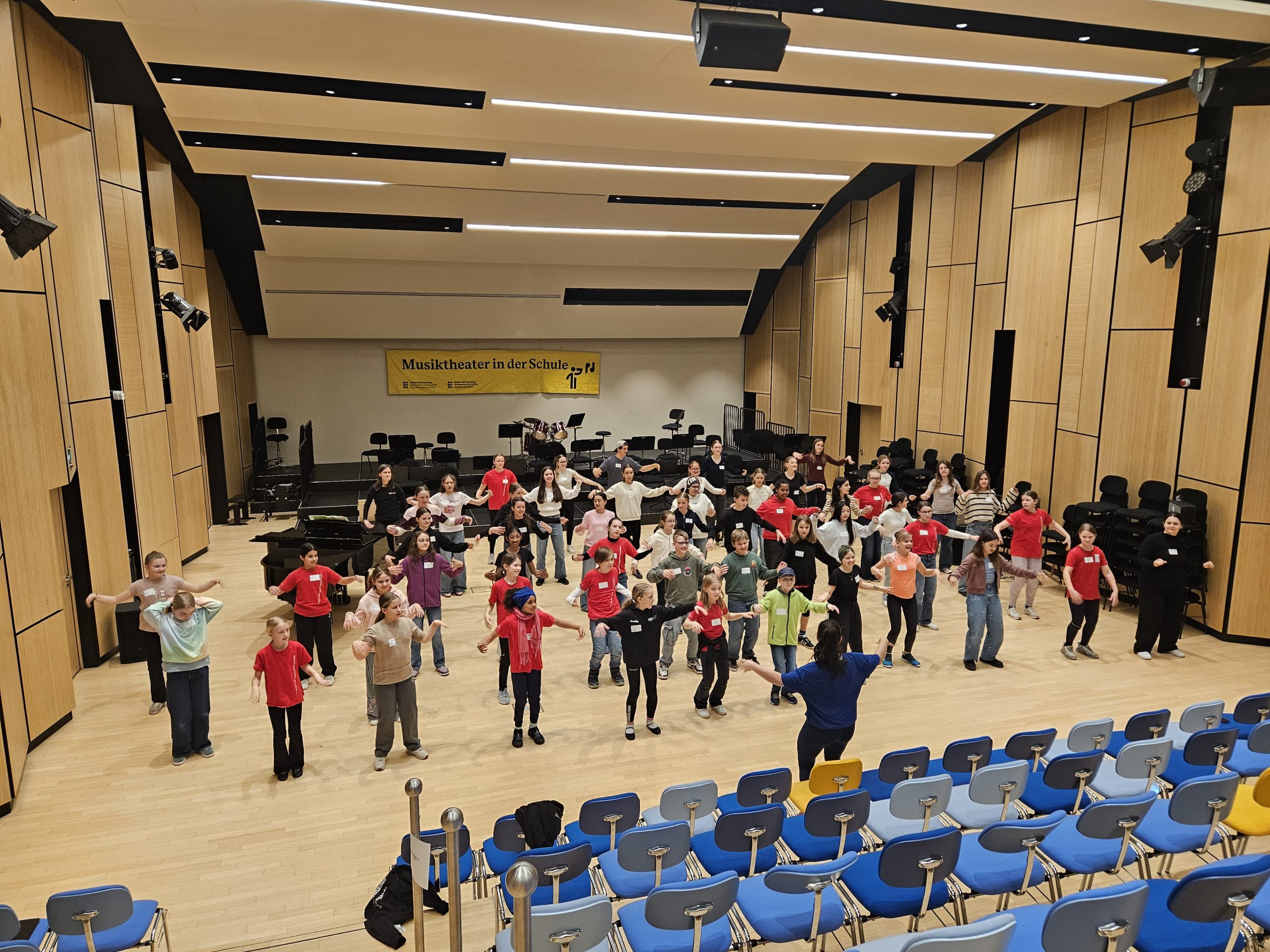 Dass Musik verbindet, wussten wir schon. Dass sie darüber hinaus aber einen ganzen Saal voller Schülerinnen und Schüler zum Singen, Tanzen, Schwitzen und Lachen bringt, konnten wir beim Musicaltag des Landes Baden-Württemberg am Donnerstag, den 12. März, hautnah erleben.